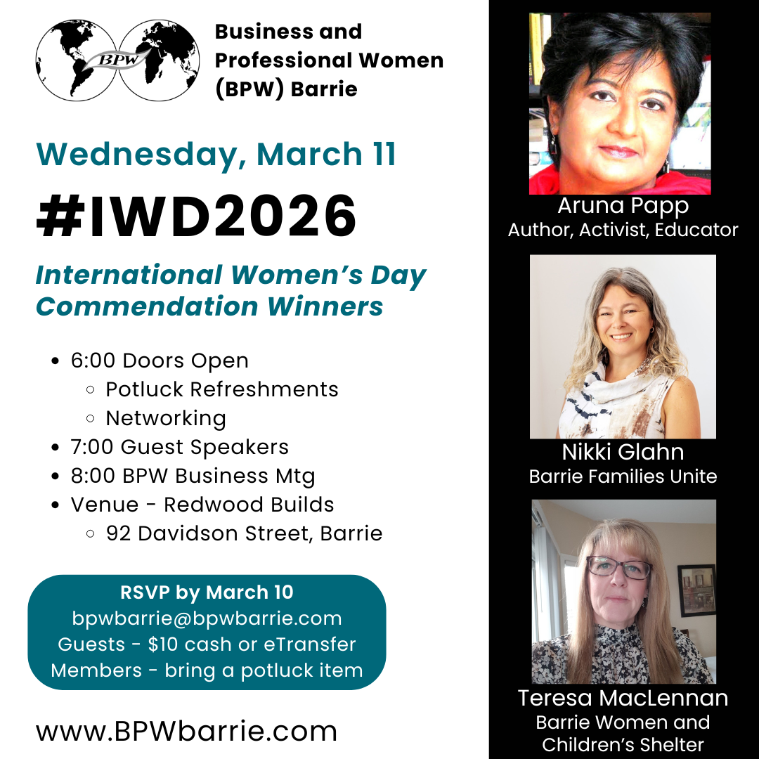 - BPW Barrie 80th Anniversary Gala – Wednesday, June 10, 2026